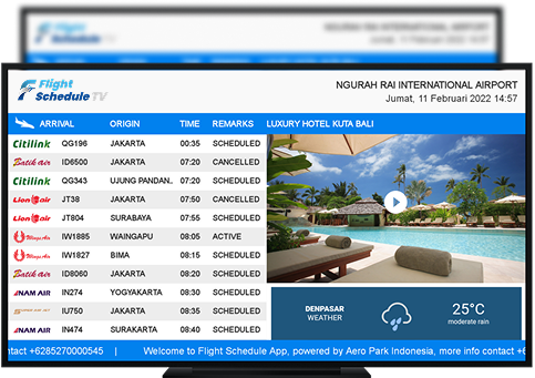 Flight Schedule TV hadir sebagai solusi modern untuk menyediakan informasi real-time dengan tampilan profesional yang lebih praktis. Memberikan Pengalaman Lebih Menarik dan Informatif.​